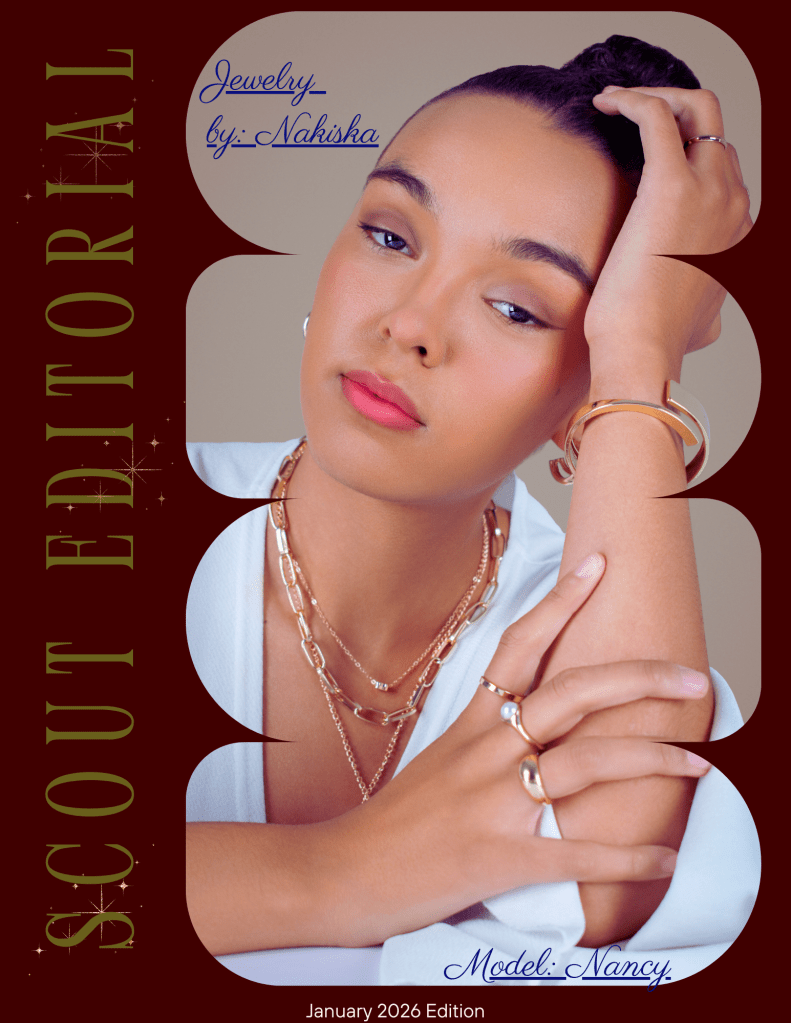This edition celebrates modern elegance through sculptural jewelry and quiet confidence. Clean lines, warm metals, and intentional styling come together to highlight beauty that feels both powerful and effortless. A study in refinement, where every detail speaks without needing to shout.